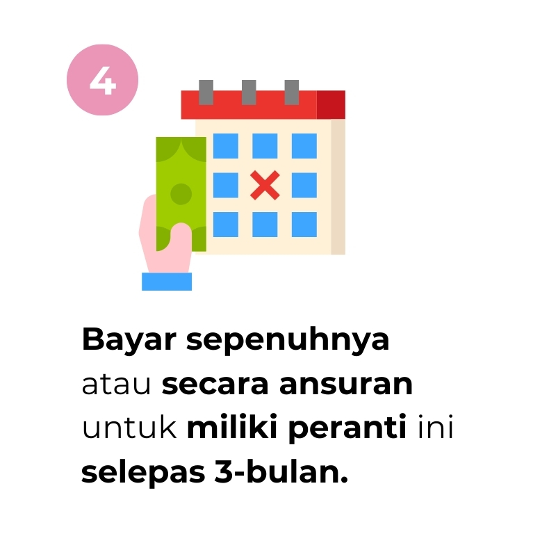 Anda mesti menyertai program auto-debit kami diawal pembelian anda untuk ansuran penuh selama lapan (8) bulan. Sekiranya anda memilih untuk memiliki peranti ini, kami akan meneruskan ansuran anda untuk lima (5) bulan selanjutnya sehingga harga penuh peranti (RM1,200) dicapai. Jika sebaliknya, kami akan menghentikan bayaran ansuran anda selepas tempoh sewa (3-bulan) tamat dan peranti selamat dikembalikan.